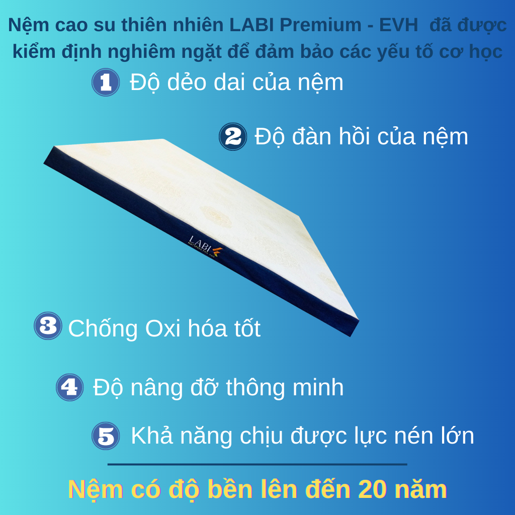 | Tên Nệm | Nệm Cao Su Thiên Nhiên 100% LABI Prenium - EVH |